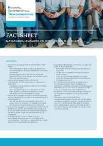 In Nederland zijn sinds 1983 verschillende massamediacampagnes ter bevordering van stoppen met roken opgezet. In het kader van het Nationaal Preventieakkoord wordt de komende jaren een nieuwe massamediacampagne uitgerold. Het doel van deze factsheet is om de huidige stand van (wetenschappelijke) kennis over massamediacampagnes ten behoeve van het terugdringen van roken in kaart te brengen.
