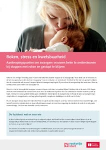 Deze factsheet van de Rookvrije start bundelt inzichten over roken, stress en kwetsbaarheid bij zwangere vrouwen, geeft kennis over effectieve interventies en daarnaast input aan zorgverleners hoe ze deze vrouwen het beste kunnen helpen.