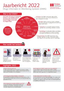Het DIMS jaarbericht 2022 rapporteert de gevonden concentraties, vervuilingen, en anderszins relevante informatie die het DIMS het afgelopen jaar heeft verzameld, en vormt zo een actueel beeld van de Nederlandse drugsmarkt. Met 32 testlocaties verspreid over alle provincies bestaat het DIMS uit een landelijk netwerk van testinstellingen. In samenwerking met deze partners is het doel om inzicht te krijgen in de markt van illegale drugs, en te signaleren en waarschuwen voor gezondheidsrisico’s.