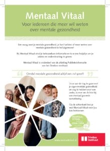 De flyer kan gratis gedownload worden om digitaal te verspreiden. Ook is het mogelijk om advies te krijgen over hoe de flyer het best ingezet kan worden. Neem hiervoor contact op met info@mentaalvitaal.nl.