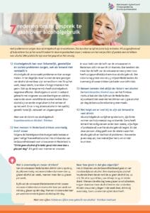 Veel problemen en zorgen door alcoholgebruik zijn te voorkomen. Dat kan door op tijd de juiste hulp te bieden. In deze inspiratiesheet staan 7 redenen om het met je patiënt of cliënt eens te hebben over alcohol. Met praktische tips voor het gesprek en het vervolg.