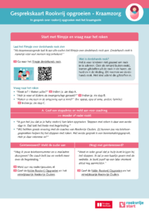 Als kraamverzorgende gun je het ieder kind om rookvrij op te groeien. Maar hoe bespreek je dit met het kraamgezin? En hoe moedig je kraamvrouwen die gestopt zijn met roken aan om rookvrij te blijven? Op deze gesprekskaartvind je een stappenplan met voorbeeldzinnen voor het gesprek.
